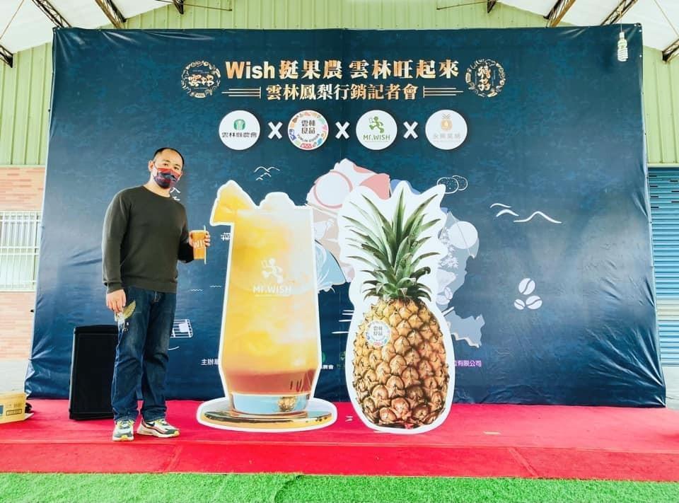 合作團隊Mr.Wish吳信泰副總表示,Mr.Wish鮮果茶玩家在競爭激烈的手搖飲市場中,以招牌新鮮水果茶打響名號,並於全球擁有40間海外據點、全臺80間門市,花了十年的專業與堅持找到品嘗自然滋味的最佳比例,本次與縣府推廣鳳梨鮮果的創新理念一拍即合,Mr.Wish鮮果茶玩家採購15-20公噸的鳳梨鮮果,預計結合雲林金鑽鳳梨飲品於端午時節前上市,讓全台消費者一邊吃肉粽一邊享受雲林的沁涼好滋味。