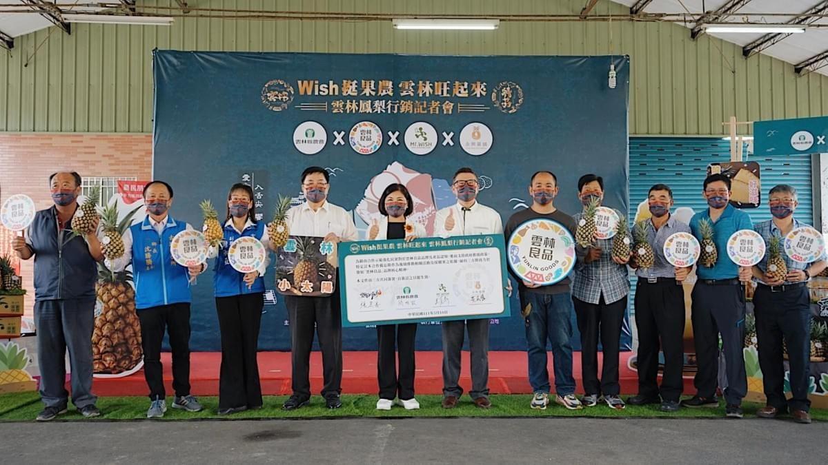 雲林縣政府持續推動在地農產品特色,並深化品項達到實際應用與推廣曝光,今在古坑鄉農會推廣股集貨廣場舉辦「Mr.Wish挺果農 雲林旺起來」行銷記者會,特別邀請產地、採購及加工業者進行雲林金鑽鳳梨採購合作計畫,提升相關產品量能,現場邀請三大合作代表共同簽署合作備忘錄,從產地至末端通路完整規劃,深耕落實農產採購及商品化目標。